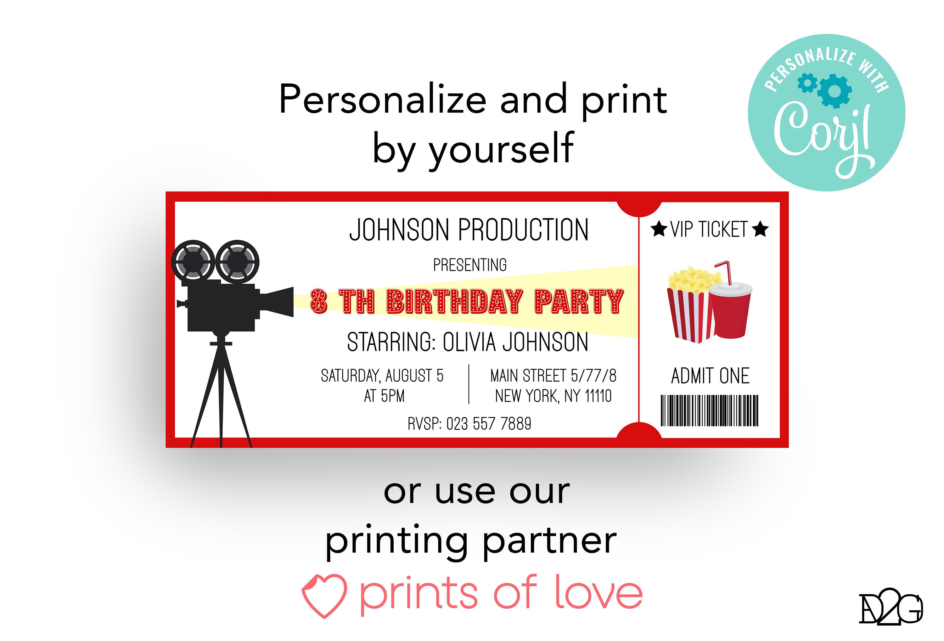 Step up your party planning game with our stunning movie night invitation! Perfect for your next cinema-themed birthday bash, this editable invitation is not only a practical necessity but also a delightful keepsake for your guests. This invitation is instantly downloadable, editable with Corjl and can be conveniently printed at home, offering a seamless and personalized party planning experience.